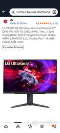 Vendo LG UltraGear 27GR75Q da 27 pollici, monitor gaming QHD (2560×1440) con pannello IPS e 165Hz.