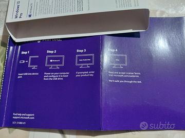 Come da titolo, vendo licenza ufficiale di Windows 10 Pro, perfettamente funzionante. Si tratta dell'intero sistema operativo Windows 10, nella sua versione Pro. Sono incluse tutte le lingue del mondo, per un totale di oltre 100 lingue (tra cui le più gettonate, ossia francese, spagnolo, inglese e americano). È compatibile sia con i computer a 32 bit che per quelli a 64 bit, l'importante è disporre dei requisiti di sistema (abbordabilissimi) essenziali per la sua installazione, vale a dire: - un processore da almeno 1 GHZ; - 1 GB di RAM per i 32 bit, mentre 2 GB per i 64 bit; - uno schermo con risoluzione di almeno 800x600 pixel; - 20 GB di spazio disponibile su HDD/SSD. L'installazione è immediata grazie alla chiavetta dati USB 3.0 inclusa, si tratta di una pendrive da ben 16 GB, contenente tutti i dati necessari per installare Windows 10 Pro sul vostro personal computer (funziona sia sui PC desktop/fissi che sui notebook/portatili), basta seguire i passaggi indicati nel piccolo dépliant illustrato e che possono essere riassunti in questo modo: 1) Inserire la chiavetta di installazione nella porta USB del computer; 2) Accendere il computer e configurarlo per farlo avviare dalla chiavetta (dovete sapere come si accede al BIOS del vostro PC); 3) Se richiesto, inserire il product key/codice di attivazione (si tratta del codice alfanumerico di 25 caratteri, presente sul tesserino); 4) Leggere e accettare i termini di Licenza. Verrete guidati per tutto il resto. Si tratta di un'ottima occasione per eseguire un'installazione pulita di Windows 10 Pro sul vostro PC oppure se si desidera passare da una vecchia versione di Sistema Operativo ad una versione superiore. Lo vendo completo di scatola, incarti, dépliant, product key, manualistica e ovviamente di chiavetta USB d'installazione, tutto originale! Il prezzo di vendita è 20€.