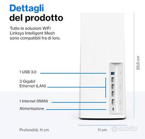 Linksys Velop MX8400 Sistema WiFi 6 mesh Tri-Band (AX4200), router WLAN con 525 m² di copertura (dato dichiarato dal produttore)