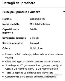 Lisciani Giochi - Mio Tab 7" Evolution 2019. Usato pochissimo. Condizioni perfette. Con custodia antiurto in silicone. Con manuale di istruzioni e caricabatterie. Niente scatola.