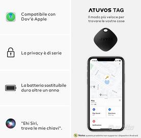ATUVOS Air Tag Smart Tracker 4 pezzi Nero, Bluetooth Trova oggetti Compatibile con Apple Dov'è (solo iOS, Android non supportato), Localizzatore Chiavi per Borse, Bagagli, Zaini, Batteria Sostituibile