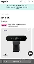 Logitech Brio Stream 4K - Webcam Pro Ultra HD / 1080p60 - COME NUOVA. Webcam Logitech Brio Stream (modello 960-001194), progettata per streaming professionale, videoconferenze corporate (Zoom, Teams, Meet) e content creation HD/Ultra HD. • Risoluzione: fino a 4K Ultra HD@ 30fps, alternative: 1080p@60fps,720p@90fps • Tecnologie: RightLight3, HDR, autofocus con zoom digitale 5x, qualità ottica premium •Field of View selezionabile: 65° / 78° / 90° via LogiTune • Audio: microfoni stereo con cancellazione rumore beamforming dual mic •Connettività: USB-A (compatibile con USB-C via adattatore), plug-and-play, compatibile macOS/Windows con supporto LogiTune, OBS, Streamlabs, XSplit, etc. Stato e Accessori • COME NUOVA • Confezione originale con clip, cavo USB, manualistica.