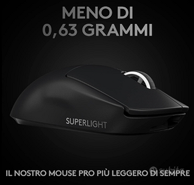 Mouse da gioco wireless Logitech G PRO X SUPERLIGHT, sensore HERO 25K, 25.600 DPI, ultraleggero con 63 g, progettato per gli eSport, 5 pulsanti programmabili, PC/Mac/Laptop - Nero