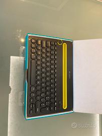 Vendo Logitech Bluetooth Multi-Device Keyboard K480 in ottime condizioni estetiche e perfettamente funzionante, con scatola originale. Modello: Logitech K480 Connessione: Bluetooth wireless Compatibilità: PC, Mac, tablet e smartphone (Windows, macOS, Chrome, Android, iOS) Multi-device: puoi associare fino a 3 dispositivi contemporaneamente e passare da uno all’altro con la rotella Easy-Switch Design: tastiera compatta con supporto integrato per telefono o tablet Alimentazione: usa 2 batterie AAA (già incluse e installate) Layout: Italiano / QWERTY Perfetta per smart working, studio, produttività su più dispositivi La tastiera è Bluetooth, non richiede dongle USB e si collega facilmente a qualsiasi dispositivo dotato di Bluetooth HID. La manopola gialla permette di passare velocemente fra dispositivi diversi senza dover disconnettere e riconnettere nulla. Consegna a mano o spedizione possibile (spese a carico dell’acquirente)
