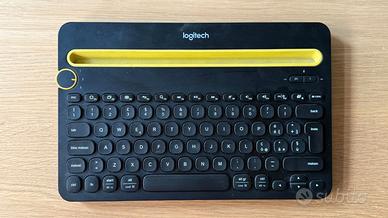 Tastiera Logitech K480 in ottime condizioni, perfetta per chi cerca versatilità e praticità. Il design bicolore nero e giallo la rende anche esteticamente gradevole. La K480 è una tastiera multi-dispositivo comoda e salvaspazio che consente di digitare meglio su laptop, tablet o telefono (vedi base per posizionamento gialla). Questa tastiera QWERTY è molto resistente ed ha una batteria a lunga durata che consente di svolgere più attività contemporaneamente e molto altro (ovunque tu sia) grazie alla possibilità di connettere più device.