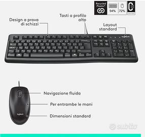 Logitech MK120 Kit tastiera e mouse USB ergonomico con filo WIndows, Linux, Mac