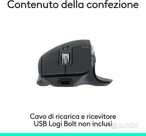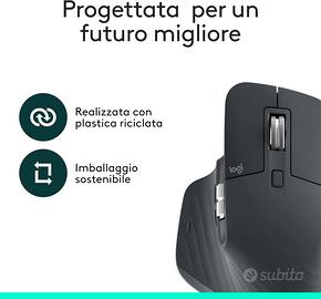 Logitech MX Master 3S-Mouse wireless ad alte prestazioni con scorrimento ultraveloce, ergonomico, 8K DPI, rilevamento del vetro, clic silenziosi, USB-C, Bluetooth, Windows, Linux, - Grigio scuro