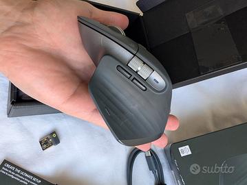 Vendo performance mouse Logitech senza fili MX MASTER 3S, utilizzato pochissimo per il computer di casa, avrà al massimo 1 anno di utilizzo e solo per navigazione web e controllo mail/documenti. Mai utilizzato per il gaming e mai utilizzato senza tappetino. Funziona perfettamente ed è completo di scatola, cavo originale USB C e documentazione. Equipaggiato con Quiet Click e sensore 8K DPI. É possibile customizzare tutti i tasti tramite l'app Logitech ed è supportato da MacOS, Windows, Linux, ChromeOS, iPadOS ed Android.