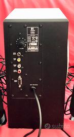 Il Logitech X-530 5.1 è un sistema di altoparlanti multicanale con configurazione 5.1, progettato per offrire un’esperienza sonora surround di alta qualità. Ha una potenza totale RMS di circa 70 watt e una potenza di picco fino a 140 watt, con una distorsione armonica totale (THD) inferiore allo 0,07% prima del clipping, garantendo un suono pulito e definito. È compatibile con PC, Mac, lettori DVD, console di gioco e altri dispositivi audio multicanale. Comprende satelliti sinistro e destro, altoparlante centrale, subwoofer e due satelliti posteriori per un effetto surround immersivo