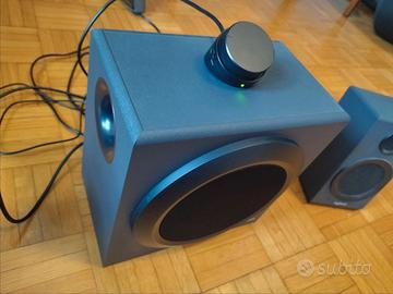 Usate ma perfettamente funzionanti. Potenza 80W, subwoofer, regolatore bassi, manopola volume e uscita cuffie. Utilizzabile con PC, TV, tablet, telefono e giradischi. Vendo nel suo scatolo originale.