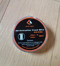 Vendo lotto 10 pezzi filo per resistenze SS Caterpillar Track Wire SS316L Marca: Greekvape Condizioni: Nuovo, ancora sigillato Lunghezza: 10ft Dimensione: 28ga*4+30ga Venduto a 12€ al pezzo dal produttore Per info o foto non esitate a contattarmi Eventualmente spedisco