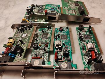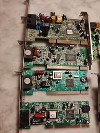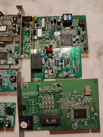 Direttamente da un magazzino chiuso nel lontano anno 2000, lotto di SETTE schede modem interni per computer vintage, retrocomputer o collezionismo.