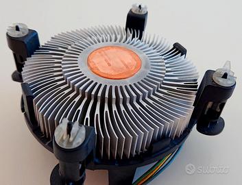 - Il dissipatore con logo blu Intel ha la ventola perfettamente funzionante e silenziosa ma ha 3 perni di plastica su 4 danneggiati in punta (vedere foto). Si sostituiscono facilmente, un kit di 4 pin di fissaggio si trova a 2 € su vari store online