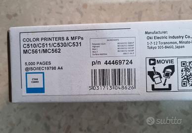 4 toner Oki, ancora imballati originali, mai aperti Condizioni PERFETTE. IN TOTALE VENDITA PER 4 TONER DESCRIZIONE 44469722 5000 pagine Giallo 44479723 5000 pagine Magenta 44479724 5000 pagine CIANO 44469804 5000 pagine nero Ottimo prezzo per intero LOTTO di 4 toner.