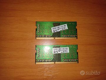 - 2 schede RAM per pc portatili da 4 GB l'una, totale di 8 GB di RAM DDR4, marchio Samsung, testate e perfettamente funzionanti. Vendo per upgrade hardware.