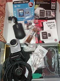 Come da titolo lotto materiale informatico comprendente ram di varia tipologia SDRAM, DDR 1/2 ,cavi hdd riduzioni per sata/ide ,adatttatori ,cavi vga,stampante,ethernet,web cam,ventola per modding,lettore e altre cose visibili in foto chiedo per tutto 40 non smezzo si prende tutto così com'è.Contattare solo se interessati.Possibilità di spedizione costo a parte.