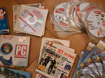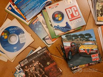 Lotto CD di svariate riviste di informatica, contenenti software di vario tipo (utility, benchmark, ufficio) e giochi anni 2000, più enciclopedia Omnia DeAgostini in 5 volumi. In totale sono circa un centinaio di dischi.