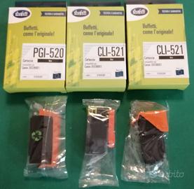 Lotto di n. 8 cartucce compatibili per stampanti Canon, marca Buffetti, NUOVE, da aprire e provviste di scatole originali. Codici cartucce: - PGI 520 (x1) - Nero - CLI 521 (x2) - Nero - CLI 521 (x3) - Ciano - CLI 521 (x1) - Magenta - CLI 521 (x1) - Giallo Compatibili con i seguenti modelli: IP3600 / IP3680 / IP4600 / IP4700/ IP4680 / MP540 / MP545 /MP550/ MP560 / MP620 / MP630 /MP640/ MP638 / MP980 /MX860