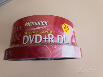 Memorex DVD+R DL: Capacità di 8.5GB per disco, doppio strato, confezione da 25 pezzi.