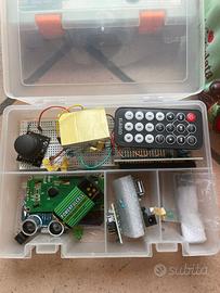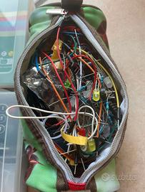 Vendo per inutilizzo grande lotto di materiale elettronico proveniente da due set Elegoo Super Starter Kit. Il materiale è stato utilizzato per due anni in un istituto tecnico (ITIS) e ora viene venduto in blocco per sgombero cassetti. Il lotto comprende: Contenuto delle due scatole Elegoo: Include schede di controllo tipo UNO R3, display LCD 1602A, sensore ultrasuoni, modulo alimentazione, joystick, telecomando e vari moduli sensore. Astuccio componenti sfusi: All'interno è presente una grande quantità di cavetti jumper (maschio/femmina), LED di vari colori, resistenze, condensatori e componenti passivi necessari per prototipazione su breadboard. Nota importante: Il materiale viene venduto così come visibile in foto. Dato l’utilizzo scolastico, i componenti sono mescolati e non è stato verificato l'inventario pezzo per pezzo (potrebbe mancare qualche componente minore o essercene altri in più). Le schede e i moduli principali sono stati riposti funzionanti dopo l'ultimo utilizzo. Proprio per via del contenuto "da riordinare", vendo tutto in blocco a un prezzo molto vantaggioso. Ottimo per studenti che cercano materiale di recupero per progetti o per chi vuole iniziare senza spendere il prezzo del nuovo.