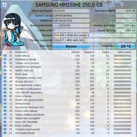1 × Samsung Spinpoint HM250HI – 250 GB, 5400 RPM (anno 2010, ~1.600 ore, SMART ottimo)