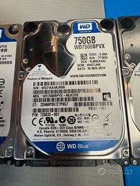 Come da titolo vendo lotto Hard Disk Sata 2.5: 1x WD BLUE 500 GB 1x WD BLUE 750 GB 1x WD BLUE 1TB 1x HGST 1TB Vendo per inutilizzo, prezzo riferito all'intero lotto.