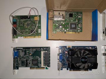 Vendo i seguenti componenti elettronici (non testati). Schede: - NVIDIA GeForce 9500 GT (30€) - PCI TV tuner (20€) - ASUS GeForce 9500 GT (25€) - Matrox Millennium G200A (30€) - Creative Labs Sound Blaster CT5803 (15€) - Realtek RTL8139C (10€) - XFX NVIDIA GeForce FX 5200 (40€) - Trust 56K V.92 PCI Modem (15€) - TechniSat SKY2PC (30€) - LSI Logic LSI20320C-HP Ultra320 PCI-X SCSI Host Bus Adapter (50€) Memorie RAM DIMM: - X4 Kingston KTH-XW4100A/1G 1GB DDR (15€ cadauno) - X2 Kingston KVR667D2N5/2G DDR2 (10€ cadauno) - X1 Vdata M2GVD2Q3H3X10AZB0K 512 MB DDR2 (5€) - X1 Kingmax KLDE88F-B8KU5 2GB DDR2 (10€) - X1 Hynix HYMP125P72CP4 2GB DDR (30€) - X1 Kingston KVR800D2N6/2G DDR2 (10€) - X1 Kingston KVR800D2N5/2G DDR2 (10€) - X3 Kingston HyperX KHX1600C9AD3K2/4G DRR3 (20€ cadauno) Memorie RAM SODIMM: - X2 Kingston KVR13S9S8/4 DDR3 (20€ cadauno) - X1 Netlist NL8126426407F-D53MSE 1GB DDR2 (5€) - X1 COMEX ER.256ND 256MB DDR (5€) Modulo cache: - Asus CM1 Rev 1.3 cache module (35€) Schede madri: - Kit processore + RAM + Intel DG41RQ (50€) - Kit processore + RAM + ASRock 775VBB (70€)