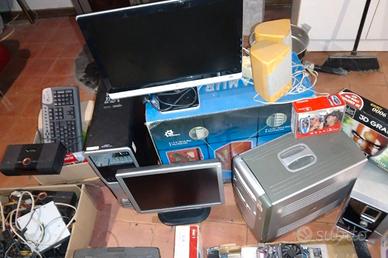Vendo tutto quello che è presente in fotografia, computer. schermi, schede PC, alimentatori,macchina da scrivere, switch router, stampante. Tanti oggetti sono funzionanti, contattatemi per info.