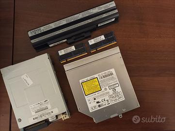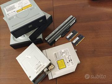*** LOTTO PEZZI PC *** Scheda Madre Motherboard: - ASRock Q1900M Hard disk - 2X Disco SSD Trascender SSD370 30GB 6Gb/s 2.5" - 1X Disco SSD Innodisk 3ME3 32GB 6Gb/s 2.5" - 1X Disco SSD CX2 512GB 6Gb/s 2.5" RAM: - 2x RAM NT2GT64U8HD0BN-AD Rx8.PC2-6400S-666-13 2 GB - 6x RAM 2GB SOD PC3-10600CL9 Marca Apacer 5 Lettori / Masterizzatori CD e DVD DRIVE: - DVD Writer SN-208 per laptop - HP GCC-4480B - COMPAQ LTN-486S - LG GH24NSD1 - DVD SATA PIONER DVR-TD09VA DVD-R/RW (MASTERIZZATO X PC PORTATILE) Floppy Disk: - SAMSUNG SFD-321B BATTERIA X PC PORTATILE: - BATTERIA VGP-BPS13B/S MARCA 2-POWER compatibile per portatile SONY PCG-7182M ALIMENTATORE PC PORTATILE: - ALIMENTATORE NON ORIGINALE 19.5V compatibile per portatile SONY PCG-7182M - A10-090P1A 19V compatibile Samsung - Ventola LAPTOP SUNON MF600pV01-C510-G9A - Scheda WIFI e Bluethoot Atheros AR5B225 Laptop - Altoparlanti Laptop PK23000J800 - Tastiera completa Laptop Samsung BA59-03271E Darfon Ritiro gratuito o spedizione a vostro carico