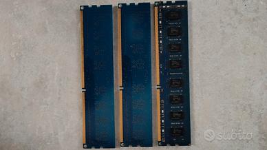 Moduli di memoria RAM DDR3 per computer Desktop. Le RAM sono in ottime condizioni estetiche e funzionanti Il lotto comprende 3 banchi per un totale di 8GB: 1x 4GB SK hynix: Modello HMT351U6CFR8C-PB (PC3-12800U, 1600MHz). 2x 2GB Nanya: Modello NT2GC64B88G0NF-CG (PC3-10600U, 1333MHz). Specifiche tecniche: Tipo: DDR3 SDRAM Formato: DIMM 240-pin (Solo per PC Desktop, NON per portatili)