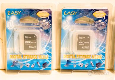 Vendo lotto di schede memoria vintage ancora in confezione, come da foto. Sono presenti: EASY Digital Storage Media MyFlash MMC micro Adapter / K-DATA EASY RS Multi Media Card 256 MB Confezioni originali, non aperte Oggetti ideali per: collezionisti di accessori tech vintage appassionati di fotografia digitale retro chi cerca memory card old stock / NOS Condizioni: nuove in blister, come da foto. Vendita nello stato in cui si trovano, senza garanzia di funzionamento testata, dato il tipo di oggetto e l’età.