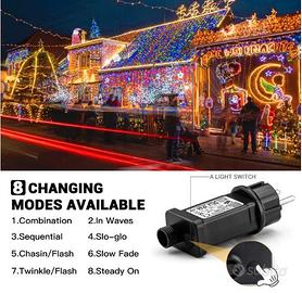 ❤4 Colori NUOVE LUCI DI 100M 1000LEDS: Luci natale hanno 1000 luci a LED e ogni distanza della luce a led 10 cm, la lunghezza della lampada 100 metri con cavo di prolunga da 3 m. 2300K di luci calde ti danno una forte atmosfera da natale, ti fanno divertire. La luce morbida è innocua per gli occhi, resistente e non facile da riscaldare.