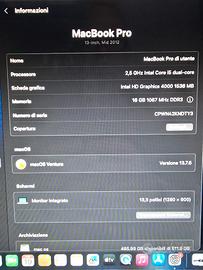 Propongo in vendita splendido MacBook Pro 13” metà 2012, configurato al massimo della sua espandibilità e perfettamente funzionante.