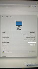 iMac 21,5” retina 4K 2019. Completo di mouse e tastiera Apple. Privo di scatola originale.