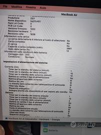 Mac book air 2019 schermo 13,3 Retina display processore i5 8gb Ram SSD 128GB. Completa di imballo originale. Batteria ha ancora un ottima capacità 250 cicli di ricarica. Mac OS Sonoma