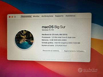 Mac Book Air 13” mid2013 i5 dual core RAM 4 Gb LPDDR a 1600 Mhz Unita di memoria flash da 128ghz Grafica Intel HD Graphics 5000
