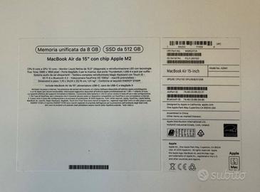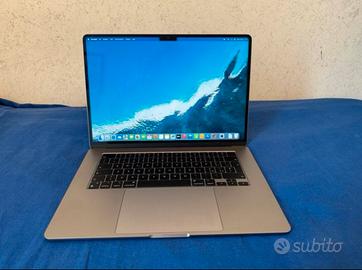 MacBook Air da 15″ con chip Apple M2. Come nuovo, con scatola e caricabatterie. Usato rare volte. Vendo per inutilizzo. Ancora in garanzia. Memoria unificata da 8 GB. SSD da 512 GB.