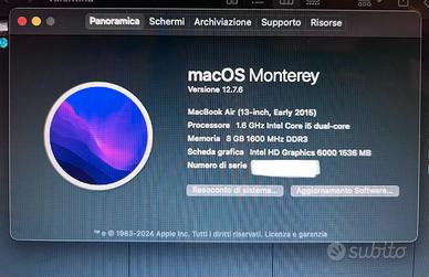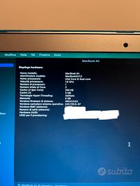 Vendo Mac book air in ottime condizioni, utilizzato sempre con la scocca che si vede in foto e che lascio in regalo. Completo di caricatore. Specifiche tecniche come da foto. Nessun difetto fisico. Tastiera spagnola retroilluminata. Ritiro a mano zona trastevere