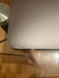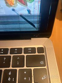 Mac book air M1 2020. Cristalli liquidi rotti a seguito di una rottura nella parte bassa dello schermo. Il computer è comunque funzionante. Angoli ammaccati come in foto. Cover in finto marmo inclusa nel prezzo.