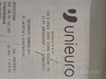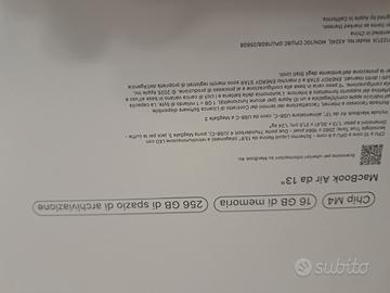 mac book air 13", processore m4, 16 gb memoria ram, hd 256 gb, display liquid retina, colore blu mezzanotte, acquistato in data odierna, presente regolare scontrino Unieuro, prezzo non trattabile, non risponderò ad offerte inferiori a quanto richiesto, possibilità di ritiro a mano, pagamento anche con PayPal. tre rate ad interessi zero
