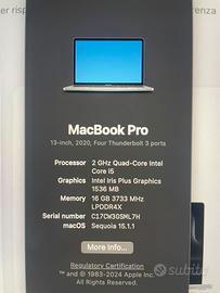-MacBook PRO 2020 processore intel I5+ -Batteria in buonissimo stato -Il computer è molto giovane -500 gb Memoria, 16 Gb RAM -Dotato di Scatola, caricatore veloce e Cover -Consegna a mano 🤚