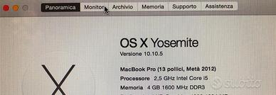 Mac Book Pro 13 pollici 4 gb Anno 2012