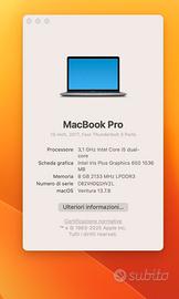 Vendo Mac Book Pro 13 inches 3,1 GHz Intel Core i5 dual-core Intel Iris Plus Graphics 650 8Gb di Ram