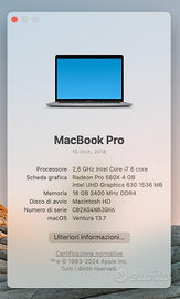 Vendo Mac Bok PRO 2018 con Scheda video Radeon Pro 560X da 4 GB e SSD da 256 GB.