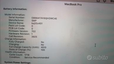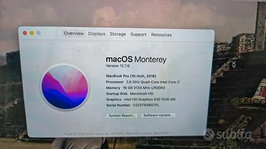 Vendo Mac Book Pro 15 pollici con touch bar - 256 gb e 16 gb di ram modello 2016.