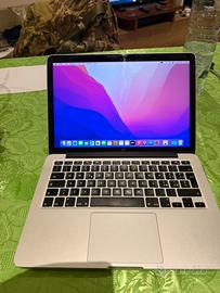 Mac book pro da 13 pollici modello A 1502. Hd da 512, 8 giga di ram, modello con schermo retina. Cavo caricabatterie rovinato ma perfettemente funzionante.