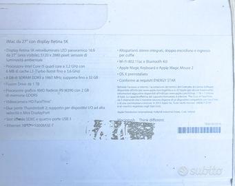 Come da descrizione allegata compreso tastiera e mouse-anno di costruzione fine 2015. Ritiro presso il domicilio del sottoscritto.