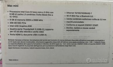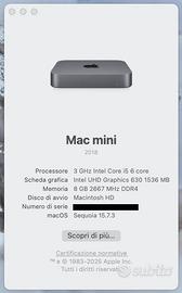Mac Mini 2018 In ottime condizioni e funzionante, con imballo originale. Aggiornato a macOS 15.7.3, pronto all'uso, da inizializzare.