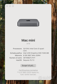 Vendo Mac mini 2018 space gray, completo di scatola e del suo corredo, utilizzato pochissimo vendo per inutilizzo, di seguito le caratteristiche principali che potete vedere anche in foto: