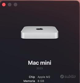 Vendo potente Mac mini con chip M2 acquistato il 27-01-2025, la macchina perfetta per chi cerca prestazioni elevate in un formato ultra-compatto. Questa versione non è il modello base include 512GB di SSD, ideale per chi ha bisogno di spazio per file e applicazioni senza dover dipendere costantemente da dischi esterni. • Chip M2: Velocita incredibile per multitasking, editing video e produttività • Storage: 512GB SSD (molto più veloce e capiente del modello da 256GB). • Memoria: 8GB di memoria unificata (gestione fluida di macOS). • Condizioni: Perfetto, tenuto maniacalmente su scrivania fissa, senza segni di usura. • Incluso: Confezione originale e cavo di alimentazione.